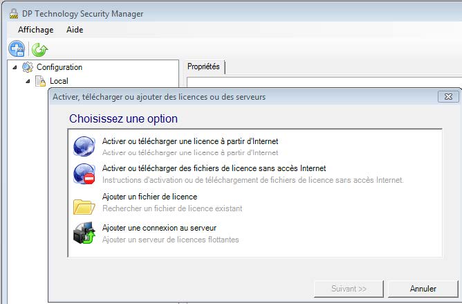 Sélectionner le « Security Manager » pour une licence fixe ou le « Server Security Manager » sur le poste serveur pour une licence flottante. -